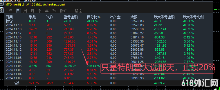 策略双向挂单进场,行情上涨即做多,行情下跌即做空,行情单边采取多空对冲留极小部分风险窗口度过极端行情,起始资金建议200美金的美分账户=2万美分起,0.01手,小资金可以用美分账户运行,观摩月收益30%--50%左右,最大浮亏15%,建议根据账号资金设置一个止损风控。 有人问用美金账号能跑吗? 我想说的是,老司机都用美分账号跑,不建议用美金账户。