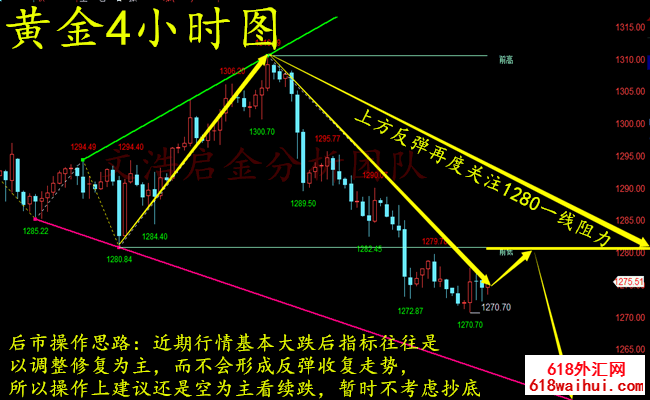 1、上方1278-1280一线做空,止损4美金,目标看1270-1272一线;