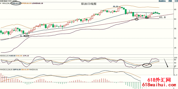 原油4小时来看:震荡下跌;MACD和KDJ死叉运行,布林线开口,短线油价偏向沿布林线下轨向下运行,偏向进一步试探60.64-63.96涨势的61.8%回撤位61.9附近支撑,而如果进一步下破,则油价将重新跌向60.6附近。上方38.2%回撤位62.7目前已经转化为初步阻力所在,在收复该位置前,短线偏向下行;布林线中轨阻力在63.1附近,若意外收复该位置,则削弱短线看空信号。今日原油上方关注62.7阻力;下方关注61.9、61.5支撑;操作上皓月誉金建议高空为主;关注公纵號:皓月誉金;薇-芯:HYYJ0002你给我一份信任,我还你十分财富,在迷茫的市场中给你指明方向。