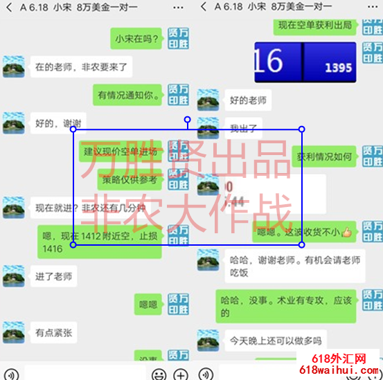晚间非农宋先生1412附近空单进场,止损1416。1395出局获利17个点左右。在这里我特别强调下止损的重要性,旦你做反单子,不是每次你都可以抗住,特别在非农这种行情波动较大的情况下,有时你一紧张,往往来不及。旦你设置止损,即使反向做单,也不用冒着扛单,爆仓的风险,只要本金还在,只要抓住一波行情,就可以转亏为盈。一旦本金亏损完,你拿什么来盈利回本,保住本金才是王道。