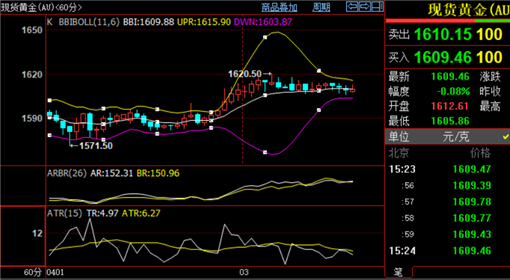 现货黄金从技术面,日线图上来看,布林带三轨逐渐缩口,黄金价格运行在布林带中轨和上轨之间,均线收死叉下行,黄金上方短期关注1535一线阻力,破位继续上看1545一线,下方短期关注1600关口支撑,破位继续下看1590一线支撑;黄金从四小时图上来看,布林带三轨逐渐走平,黄金价格运行在布林带中轨和上轨之间,均线收金叉上扬,上方短期关注布林带上轨1625一线阻力,下方短期关注布林带中轨1598一线支撑。综合来看,今日短线操作思路上刘.铭诚个人建议以回调做多为主,反弹高空为辅,上方关注1620-1628一线阻力,下方关注1600-1595一线支撑。盘间行情时时变化具体操作策略以刘铭诚レ,亻言:zdmj868实战为准!