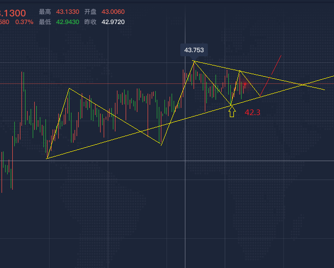 原油技术面来看,日线来看窄幅震荡;布林带始终趋平,油价始终徘徊5个月高点附近,但承压于上轨;目前MACD粘合、动能及其微弱,KDJ初步死叉、指数低于70。技术面看,油价整体动能微弱,料等待方向性突破。李善策认为上行方面,先留意周三高点43.78,这与布林带上轨接近重合,且油价近期始终未能有效突破;强阻力在3月4日高点48.66附近。此外,简单留意3月6日高点46.38。李善策认为下行支撑先留意布林带中轨42.16,进一步支撑下看布林带下轨40.44,强支撑在6月15日低点34.36附近。该位自3月跳空以来被多次测试,参考性较强。此外,6月25日低点37.08也有一定支撑性。综合来看,今日短线操作思路上李善策建议以回调低多为主,上方短期重点关注43.8-44一线阻力,下方短期重点关注41.8-42一线支撑。行情千变万化,需要获取每日在线实时指导操作策略及解套策略,可直接添加本人一对一指导交流【ayx88867】本人将尽量为您排忧解难。