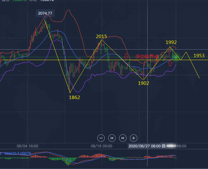 黄金昨日再收阳十字星,说明上方的压力和下方的支撑都很强,黄金再次陷入震荡之中,也给金价的上涨带来了很大的不确定因素,黄金在连续两日上涨后日内进一步攀升,已经突破1980美元。不过日均线重新结成金叉,KDJ三线开口向上,再加上日线重新站上布林带中轨,暗示多头占优,但MACD死叉仍在,所以看多的同时谨防回调,昨日8月线收官,显然又是一个历史高位十字,这里是上涨中继还是反转开始,目前还存在分歧,不过按照金价的节奏来看,黄金还是处于上升阶段。黄金4小时来看,黄金延续此前震荡走高的势头,目前已经站上所有均线水平。昨日周一并没有强势破高延续,而是回调后进入局部震荡拉锯,冲高未破高,使得多空量能不足,震荡是常态。不过布林道轻微开口向上,MACD金叉,红色动能柱基本持稳,KDJ粘合即将结成金叉,暗示黄金可能再次上涨,今日大方向继续看多不变,1955已经成为当前的关键支撑。综合来看,黄金今日短线操作思路上李善策个人建议以回调做多为主,反弹高空为辅,上方短期重点关注1975-1980一线阻力,下方短期重点关注1955-1950一线支撑。目前手上有低位空单和高位多单不知道如何处理或者近期出现严重亏损可添加李善策老师微信:ayx88867寻求帮助,我会抽空给予我粉丝最大的帮助。