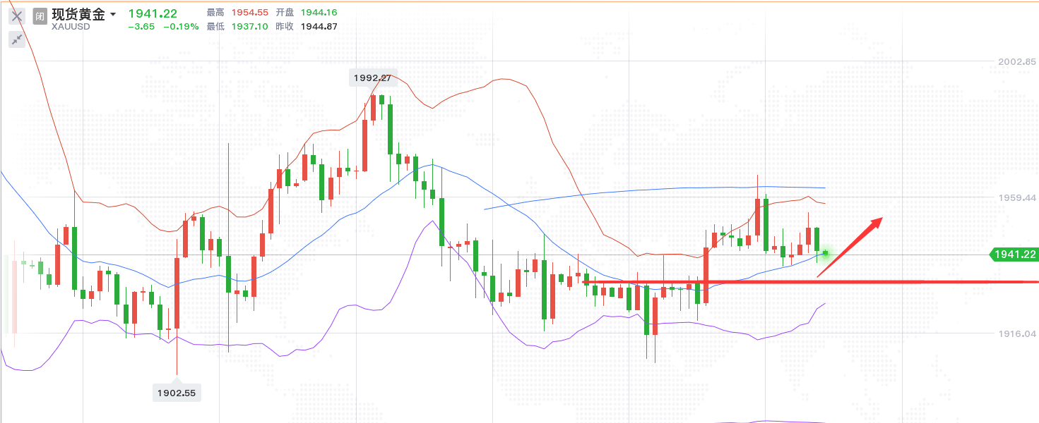 2、黄金下方回踩不破1930-1932一线做多,止损4美金,目标看1943-1945一线;