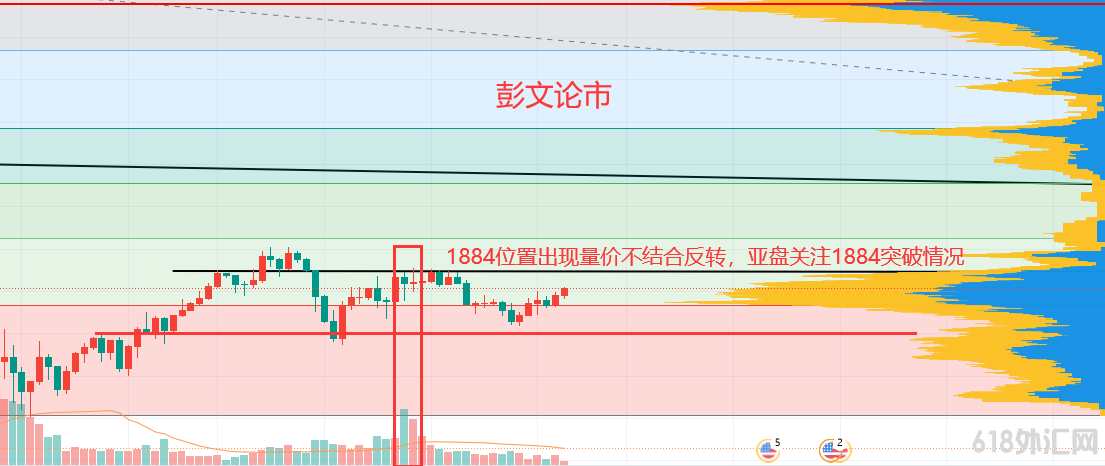 注意,昨日到今日亚盘整体交投量小,属于小打小闹,没有大订单进场确认趋势,如果再次出现异动,以异动量价结合分析判定方向。