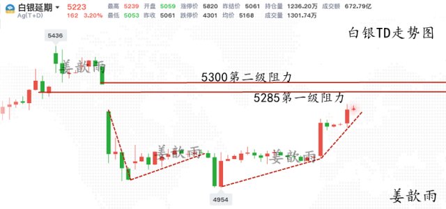 白银T+D:反弹上方测试5100/5130二次开空,防守5180上,目标看5020/5000的低点,破位则看4950的前低!