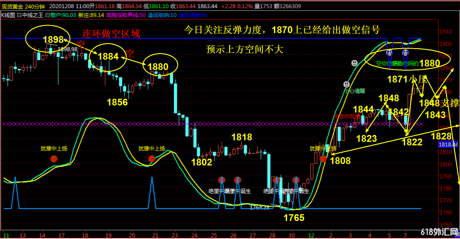白宫希望发放支票,佩洛西同意数额更高的支票条款,利多黄金。而川建国签署国民优先接种行政令,辉瑞疫苗符合FDA标准,利空黄金 23:30将公布美国至12月4日当周EIA原油库存,预期为减少151.4万桶,但凌晨公布的API原油库存意外录得增加。晚间原油库存数据预期是利空 w0203en多多交流 黄金具体点位分析:这一波的走势,我们看的是黄金在1895上下承压和1925上下承压,其余位置短线博回调做短空。上方只在1895和1925两个位置布局波段。届时我们可进行中线空单进场;美盘1小时回踩到位,中轴上移到1860上下位置,因此依托1860的支撑,继续加仓做多看涨运行到1880-1885这个区间即可,今日1855-1860区域继续做多;温馨提示:行情多变,真金白银,切勿凭感觉进出场,思路清晰不盲目 w0203en多多交流