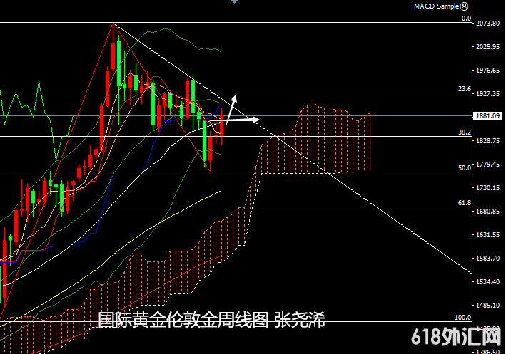 但金价至此则有所遇阻,并产生回落,到周五(18日)黄金的反弹动能再度受到限制,最终收于1881.09美元,周振幅76.37美元,收涨41.71美元,涨幅2.27%。