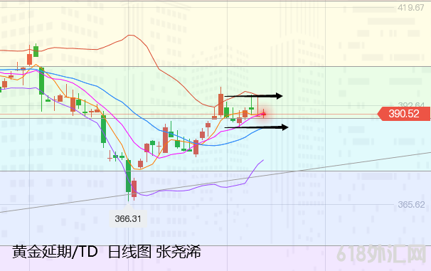 下方关注390元关口附近支撑,以及386.90元/克支撑波段看涨;上方关注392元关口附近阻力,以及394.40元/克阻力。