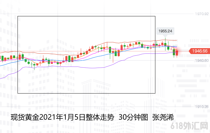 上交易日周二(1月5日)国际黄金伦敦金续行周一涨势而再度收阳。走势上,金价自亚市早盘开于1942.71美元/盎司,受到大涨后的获利了结,先行走低并录得日内低点1934.20美元,但此处也即上轨支撑,至此技术买盘产生跟进,基本面上,由于不断升温的通胀预期,美元指数再度下跌,接近2018年4月以来最低水平,令金价走势又再度转强走高,延续至美盘时段在触及1952美元上方,后虽产生回落至1939美元,但随着新冠感染病例增多,佐治亚州发现变异病例,增加了其更多的财政刺激计划,促使美股从上日创下的历史高位回落,而又推动金价再度反弹,并再度触及高点录得日高1952.58美元,最终收于1949.84美元,日振幅18.38美元,收涨7.13美元,幅度0.37%。