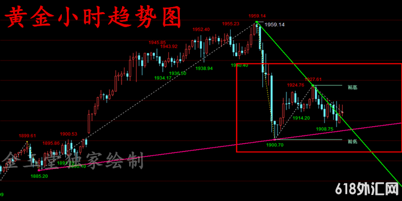 目前来看,前几天黄金下跌的位置技术上合情合理正好1965压力之下,空头借助压力配合消息完成对多头的绝杀!最低至1900关口,理论上节后的缺口回补,并且抵达1764以来上涨趋势支撑位置,同时1900关口是前期重点压力区域!因此的话,接下来上方1960-1965区域已经不再关键,在节后第一天大涨已经预示着1965迟早要突破,但是这次的暴跌会把时间推后。