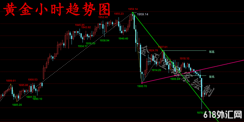 若是晚间没有再破低点,反而是震荡走高攀升,破起跌点1905,再看高点1916.5,双双皆破,则后续行情还将有望测试1928-1930区域。