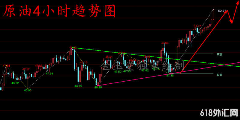 原油本周五开盘50.8一线,亚盘在51.0一线震荡徘徊,在欧盘后期原油冲高上涨,最高触及51.8一线,美盘时段回落至51.2一线,日线级别,MACD高位金叉,KDJ金叉,指标显示超买,均线仍多头排列,多方牢牢把控盘面,且上方压力较小,上涨趋势中油价易涨难跌,且未有筑顶迹象,短期多头格局难以扭转,4小时来看,价格处于高位盘整,原油整体保持慢涨节奏,下周原油操作思路上金玉堂个人建议回调做多为主,反弹做空为辅,上方阻力关注53一线破位,支撑短线提高看到52一线。