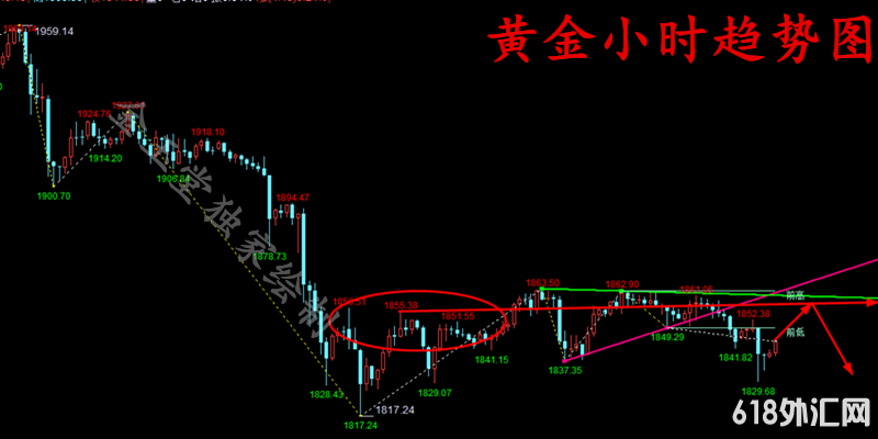目前4小小时来看价格触及下轨支撑之后走出止跌反弹的上涨,但周期空头排列,MACD红色动能柱持续缩短行情有回来需求,但布林带中轨依然勾头向下反弹只是为了更好的下跌,所以综合分析操作上金玉堂建议反弹做空为主,上方关注1850-1853,下方关注1828-1820一线支撑。一旦突破关键阻力和支撑将需要改变操作思路,具体可以关注本人,本人会根据行情实时给出建议;