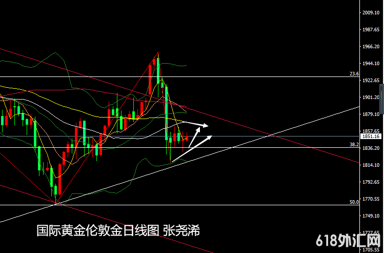 目前金价仍在区间震荡,昨日提到的三角范围向上向下都没有突破,所以仍需要以一定的震荡区间对待,具体点位及操作思路可关注实仓指导信息为主。