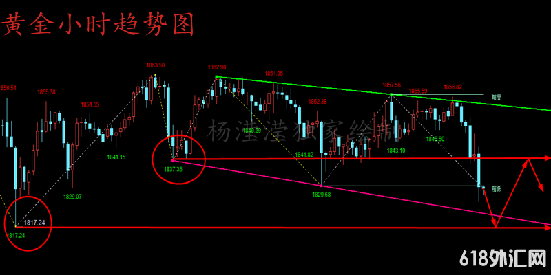 1、目前4小时连续阴线下跌,因此我们下周开盘短线看反弹在1834上方前期支撑点达到后参与空单;