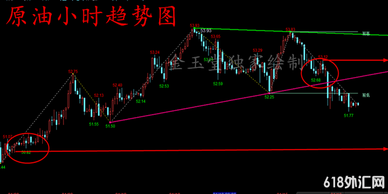 原油如金玉堂预测一样,到达阻力区域54-55之后出现调整,所以近期暂时保持一个区间思路去做,等待调整结束后继续看涨。大周期周线上原油继续看涨不变,上方空间还很大,回撤的支撑在50.7附近,如果日内给到可以做多,止损50,看51.5-52.5.上方压力在H4的MA10的位置,也就是52.7附近,给到可以短空,看51.5-51,防守放在53.3!暂时保持区间50.7-52.7区交易即可!大方向看涨不变,尽量合理控制仓位!