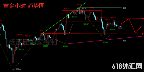现货黄金上周大区间保持在1875-1836,上下波动走了几个来回,看似简单,但实际走势比较复杂,诱导性很强,单日反转走势也很强,比较难以连续把握。本周开始交易,是1月最后一周,大家注意跟上跟进行情及时变化参考本人的分析结合自己的策略,做好每次交易。早盘黄金开盘直接上涨至1860附近,再次延续上周尾盘的弱转强,确保了周初难破位大跌。从日线周期来看,黄金目前的弱势压制依旧保持在1875高点,日线周期的布林中轨不破,黄金就不延续看强,而低点1836不破也不看极弱,随时都可以反转走强。确定未能单边,小周期交易就以高空低多为准。4小时周期目前布林收口,均线粘合在一起,保持在区间内交易即可,周内上破1875可见前期高点1900,破位1836可见1807。而在日线呈现连阴之下,金玉堂个人或更看好本周黄金向下破位的可能性。目前价位在1851附近,周初黄金小区间震荡,暂时给出的区间在1867-1844,建议晚间在此区间内高空低多。如果美盘破位区间,就扩大周期看震荡。