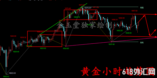 黄金在上周大区间保持在1875-1836,上下波动走了几个来回,看似简单,但实际走势比较复杂,诱导性很强,单日反转走势也很强,比较难以连续把握。本周开始交易,是1月最后一周,大家注意跟上跟进行情及时变化参考本人的分析结合自己的策略,做好每次交易。早盘黄金开盘直接上涨至1860附近,再次延续上周尾盘的弱转强,确保了周初难破位大跌。从日线周期来看,黄金目前的弱势压制依旧保持在1875高点,日线周期的布林中轨不破,黄金就不延续看强,而低点1836不破也不看极弱,随时都可以反转走强。确定未能单边,小周期交易就以高空低多为准。4小时周期目前布林收口,均线粘合在一起,保持在区间内交易即可,周内上破1875可见前期高点1900,破位1836可见1807。而在日线呈现连阴之下,金玉堂个人或更看好本周黄金向下破位的可能性。周初黄金依旧围绕1845-1868区间震荡,所以建议后市依旧在此区间内高空低多。如果趋势破位区间,就扩大周期看震荡。