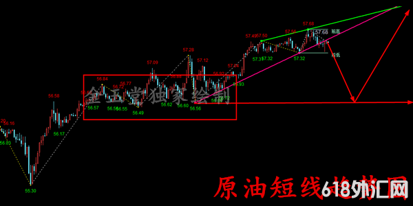 晚间短线操作思路:整体回落原油56.5上多,止损56,目标58-59;