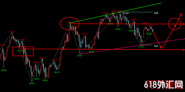 从日线来看:KDJ金叉,MACD金叉,美油上周四陷入多空拉锯战,并录得十字星,这尤其值得关注,可能意味着行情将转跌。尽管多头仍然控制着盘面,但空方势力近期有所加强,不过仍然不足以扭转整个上涨趋势,因此建议激进者日内低位做多,保守者暂时观望为主。中长线来看,尽管涨势仍然得以维持,不过风险也在逐步积累。目前油价的涨势已经超过了年初大多数分析师的预料,料上方的上涨空间应有限,且短期内过高的涨幅积累着大量的获利盘等待了结,这对油价后市的上涨并不利。何子豪认为短线油价面临技术的回调风险,初步支撑在62.0整数关口附近;其次是验证过的61.0支撑位,进一步支撑在20日均线58美元/桶附近。综合来看,原油短线操作思路上何子豪个人建议以低多为主,高空为辅,上方短期重点关注63.0-63.5一线阻力,下方短期重点关注61.0-60.5一线支撑。 子豪寄语:每一单进场,我们都有充分的利润,不仅如此,我们给实盘客戶群的朋友们在给策略的时候提供了图解,一目了然,为什么进场,为什么这里是开仓点,预期目标到哪里,都一目了然!进场不犹豫,持仓有底气,出局不含糊!胜利不会随随便便的来,而有备而来的交易从进场前的策略就能看出胜算的把握