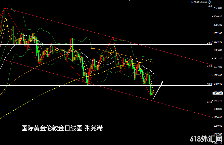 基本面上,张尧浠认为;隔夜黄金的反弹,一方面是美元及美债收益率的回落影响其反弹,另一方面也是技术上的触及自2075美元而下的通道支撑产生的逢低吸纳并引发空头回补。关键在于此等利好推动能够持续多久,因为金价早盘已再度走低,如在本周金价不能收取阳线,则还有下行的风险触及1690美元预期,如收取阳线,则看好本周低位开始的中期反弹,上行则再度关注通道阻力线为目标先看1830美元。