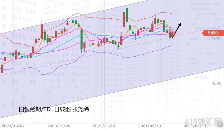 白银TD:银价周二再度收跌后,晚间先行开于5363元/千克,则表现直接反弹,延续至今日周三白盘,相比金价则反弹情绪要高,目前保持相对较高的看涨意愿,整体走势上,保持着4562元而起的上升趋势,主图上有众多的均线压力会对短期多头造成打压而回落,但如不能再度回跌至开盘价下方,则看好逢低走高。