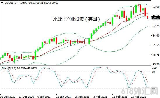 周三(3月3日)亚洲时段,现货黄金小幅下跌,交投于1733附近。周二(3月2日)金价触底反弹,尾盘收涨0.77%至1738.38美元/盎司,因美元和美国国债收益率回落提振对避险黄金的需求,同时华尔街三大股指集体下跌也支撑了金价。各国官员陆续开始表达对债券收益率大涨的关切,欧洲央行官员态度鲜明地表达了政策干预的可能。另外,周三拜登的1.9万亿美元刺激案将继续在参议院推进,投票可能在周四进行,这对金价仍有一定的支撑。而拜登对疫苗接种的乐观预计继续拖累金价,黄金ETF的规模不断缩水也预示着金价将面临更大的麻烦。短线金价暂时企稳,但黄金的前景仍然充满坎坷,多头也很难在短期获得太多的动能。日内重点关注小非农ADP就业数据,这将给近期关于经济复苏的争论带来更多依据;另外,美联储官员博斯蒂克和埃文斯将发表演讲,美联储还将公布经济状况褐皮书。