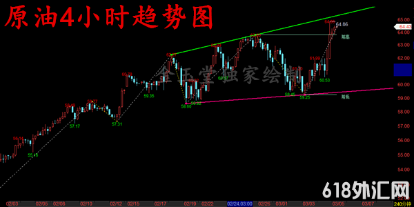 原油昨天成功的调整之后走反弹,力度不小,符合金玉堂的交易思路,昨天也是很精准的给出60.5的看涨,到达进场点位后迎来反弹,金玉堂对原油的敏感度是很精准的,多空的切换也是很顺手。今天原油继续看涨不变,日线上均线已经金叉反弹,所以回撤就是做多,4小时方面最后一次回踩是在63.3,今天可以在此附近看涨,而日内的多头防守位置是在62.3,油价不管任何适合下破62.3意味着行情在此进入震荡,交易上一定要看好防守位置去做,而不是你所认为的低点位!所以日内可以在63.3-63.4多,损62.3,看65-66。