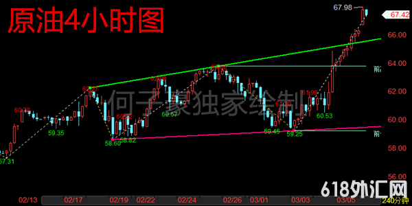 原油技术面来看,目前价格的上涨主要来自于基本面的推动,因此技术面参考较为薄弱,从日线上来看,金价至回踩中轨附近59.1连续三日拉升,今日早间高开高走上方至2018年10月收盘点67.9的强阻力,目前对于原油的操作来看,基本面利多,技术面存在超买,但是没有出现较大的抛售,但是考虑到基本面利多的消耗,多头能否延续还是个问题,技术形态存上方还是油较大阻力,能否进步一走高有待市场进一步的动向,同时下方回踩在前期阻力转变为的支撑带62.8-63.7一带短期支撑看涨,上方则关注67.9短期阻力,进一步则看69-70阻力,综合来看何子豪认为,非农数据好于预期,进一步表明经济好转,支撑油价需求。