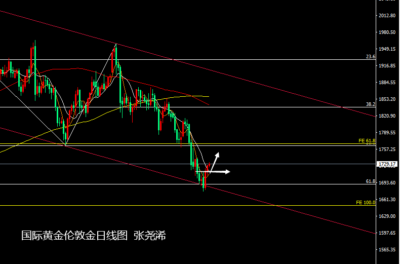 月线级别和周线级别;金价走势都有止跌连续反弹的信号,但主图上仍处于回撤趋势,附图信号整体仍偏向空头信号,故此暗示在反弹触及1760美元附近或看周图涨云层的上行边后则会再度遇阻回落,如不看好刷新低点,则会保持在回撤的低位宽幅区间震荡一段时期。