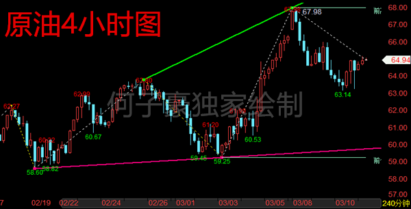 3.11 原油今日短线操作思路:建议以回调低多为主,反弹做空为辅,上方短期重点关注65.5-66.0一线阻力,下方短期重点关注63.5-63.0一线支撑。