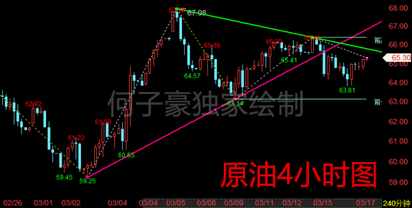 3.17原油操作建议:65.3附近空单,止损65.9,止盈看到64.4-63.8,若行情回调63.8-64区间多单进场, 子豪寄语:每一单进场,我们都有充分的利润,不仅如此,我们给实盘客戶群的朋友们在给策略的时候提供了图解,一目了然,为什么进场,为什么这里是开仓点,预期目标到哪里,都一目了然!进场不犹豫,持仓有底气,出局不含糊!胜利不会随随便便的来,而有备而来的交易从进场前的策略就能看出胜算的把握。