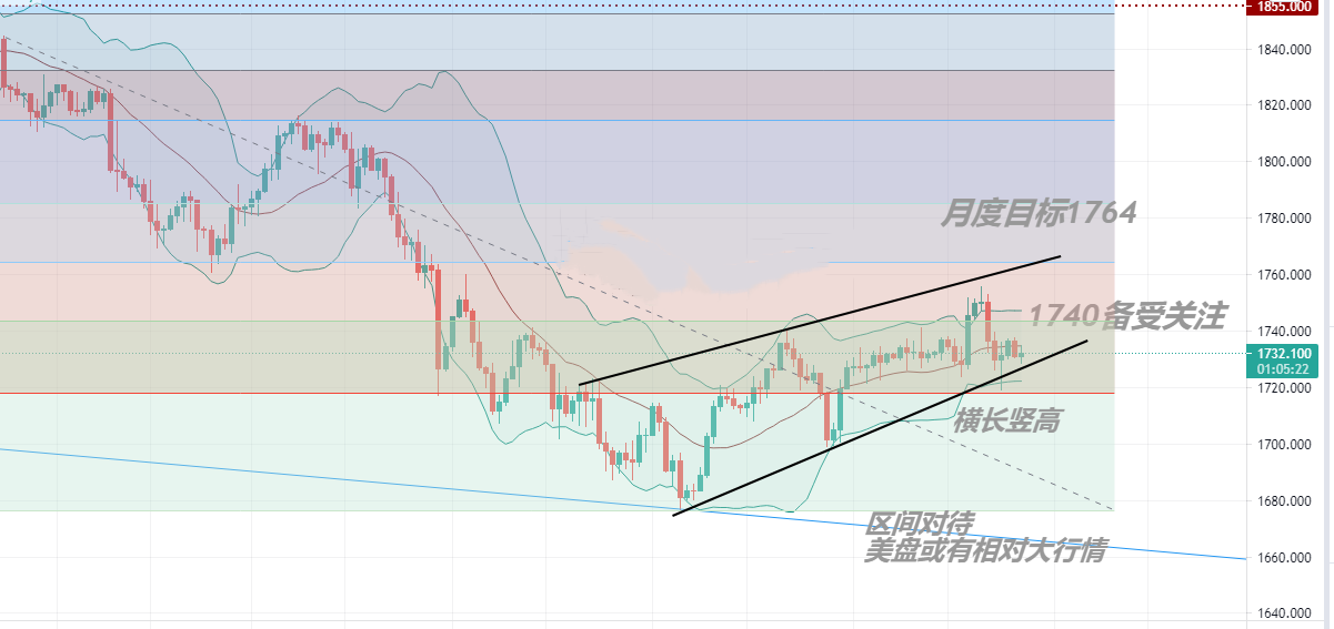 ②白盘1732盘整,欧盘在上涨中去进行买盘的情绪释放。在美盘中借助“四巫日”做最后的上行反弹,美盘尾盘时间节点在1748左右高位震荡,下周再继续破位。