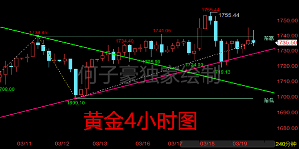 3.19晚间黄金操作建议:回落不破1730-34位置做多,破位则以1728为防守逢低做多,目标看1740-145位置。