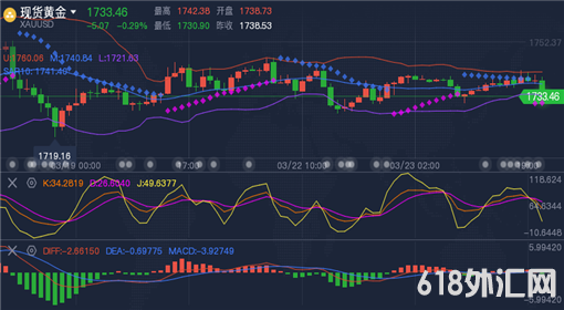 周二(3月23日)欧洲交易时段,市场正在采取更加规避风险的基调,欧股全线走低,油价大跌4%。与此同时,美元保持坚挺,现货黄金承压于1740下方,但跌势不大。今日市场关注美联储主席鲍威尔以及美国财长耶伦的国会证词,可能会引发市场波澜。鉴于美债收益率和美元当前的水平,金价可能已经超过了合理交易价值。从现在开始好像越来越难大幅上涨了,特别是如果美债收益率继续上扬的话,本周在尘埃落定之后,我们对美联储每个决策者的想法有更好的了解,很可能对美联储今后的方向会有更好的了解,将为金价走向奠定基础。