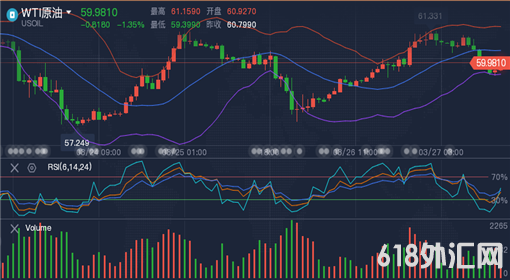 原油技术面分析:原油日线单阴回吐前一日的反弹空间,受消息面的反弹只是昙花一现。技术结构未突破62.0之前,台阶下行通道未改变。这也是看空的原因。从日线的收盘来看,后市还是倾向于震荡中蓄势走回落。但节奏可能伴随反复。4小时随着反弹高点61.30下移,暂时处于临界点62.0之下收盘转弱,小台阶通道未改变,而油价下探后也未直接跌破57.30.由于波动基数大,上探和回落的基数大,使得短线拉锯的区间幅度也比较大,后市暂时还是看在区间61.30-57.30区间内拉锯,趋势而言,在探高中择机选择高空。综合来看,今日短线操作思路上刘铭`诚个人建议以回调低多为主,反弹高空为辅,上方短期重点关注61.7-62.5一线阻力,下方短期重点关注59.0-58.5一线支撑。盘间行情实时变化具体操作策略以刘铭诚V亻言zdmj868实战为准!