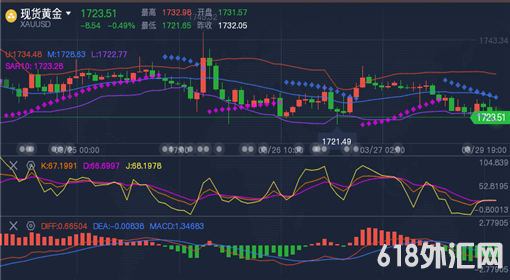 周一(3月29日),国际金价下跌,因美元指数上升,而且随着经济复苏和疫苗接种率提高,投资者对风险资产的偏好增加,这削弱黄金的避险地位。现货黄金短线仍下看1674美元。美元本周开局持坚,因美国经济复苏和疫苗接种进展快于其他发达国家,吸引投资者涌向美元。美国有可能推出数万亿美元财政支出,支撑全球经济成长前景。美国商品期货交易委员会(CFTC)上周五公布,截至3月23日当周,对冲基金及资金管理公司提高其纽约商品期货交易所(COMEX)黄金的多头仓位。不过美国2月消费者支出录得10个月来最大降幅,因寒流席卷美国许多地区,且第二轮援助支票对中低收入家庭的提振作用消退。这限制了金价下行步伐。
