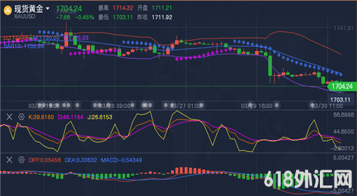 周二(3月30日)亚洲时段,现货黄金窄幅震荡,交投于1706附近。周一(3月29日)金价跌超1%,坚挺的美元和不断上升的美债收益率削弱了避险黄金的吸引力,对美国经济将迅速复苏的押注也给金价带来压力。另外美联储官员继续对美债收益率上涨表示乐观。不过,拜登即将推出逾3万亿美元的基建计划,欧美各国再度卷入新一波疫情,这些因素给金价带来一定的支撑。短线走势料继续疲软,后市可以关注筑底的情况。日内数据交情清淡,投资者可以关注美国3月消费者信心指数、欧元区3月经济景气指数、德国3月CPI等数据。
