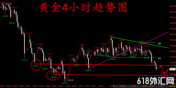 当前黄金短线重点压力关注:1706---1710;下方支撑关注:1689---1670。