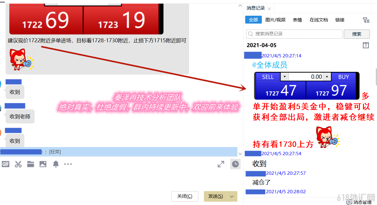 在文章上给出的策略不一定适合每一个人,近期我们分析团队专门针对市场上的一些投资者们开发了体验群,群内每天会有专业的指导老师在线对行情实时分析,盯盘,守单。同时,群内也有志同道合的投资朋友,一起交流学习!操作不是很理想的朋友可以免费进群体验,对于想要学习黄金、原油等投资产品的朋友也会有较大帮助。每天两到三单的操作不求一夜暴富,只求落袋为安!我们这里也没有一夜暴富,只有稳健的交易系统和一颗真诚的心,相信我就来找我,说太多那种不现实的话我觉得会很虚伪,但求细水长流。下面为大家展示今日群内部分战况(绝对真实,杜绝虚假,群内持续更新中,欢迎前来体验、学习交流):可联系秦泽冉本人进群体验,咨询热线:qzr2689
