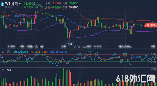 原油从技术面来看,原油昨日拉锯震荡收平,日图十字K线收盘,最高反弹60.0最低至58.10.但收盘仍收在59.50附近,整体还是维持在区间内拉锯,并未实质性破位,而是宽幅拉锯走过山车。日线双十字收平,短期还将继续维持这种震荡拉锯走法,操作上也是超短线应对。有空间及时落袋不贪恋。不然拉锯中不出单又会被拍回原位。宽幅区间在62.30-57.30等待选择方向。日内短线的收敛区间关注61.20-58.10。4小时维持在此前的区间内运行,布林道也开始收口,目前的拉锯是为了日线和周线选择方向当中,由于此前连续的十字K线,趋势上进入钝化,多空胶着阶段,在趋势明朗之前,会伴随这种宽幅的洗盘震荡,可能暂时还不会形成有效的突破,短线暂且维持区间操作。综合来看,今日短线操作思路上刘铭诚个人建议以反弹做空为主,回调低多为辅,上方短期重点关注60.8-61.5一线阻力,下方短期重点关注58.0-57.5一线支撑。盘间行情实时变化具体操作策略以刘铭诚V亻言zdmj868实战为准!