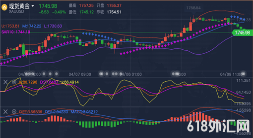 周五(4月9日)现货黄金窄幅震荡。金价近期触底强势反弹突破1744一线阻力,日内或延续涨势,建议投资者逢低做多,并关注1764一线阻力。周四(4月8日)金价大涨1.04%,因美元和美债收益率均下跌,且美联储重申其鸽派政策立场也提升了黄金吸引力。另外,初请失业金数据不佳也提振了金价。不过,股市再创新高以及美国经济复苏的预期不断上涨等因素限制了金价的走势,黄金ETF持仓3月大幅减持也令市场担忧。短线金价可能继续上涨,中长线走势不容乐观。衡量美股波动风险的VIX恐慌指数周四最低跌至16.55,创逾一年新低,显示市场避险情绪寥寥,这在一定程度上限制了金价的涨幅。分析师认为,较快的原材料价格上涨最终将传导至消费领域,推升物价上涨。目前市场预期3月CPI数据也将大幅提高,这将为市场对通胀上涨的预期提供数据支撑。一般情况下,通胀预期的上涨,会给金价提供支撑,因为投资者会买入黄金保值增值。当然,美元指数也可能会受到数据的支撑,在短线可能会限制金价的上涨空间,需要予以留意。日内关注美国3月PPI数据,PPI预计将大涨,可能会进一步提高通胀预期,给金价提供进一步上涨动能,甚至会顶破1760关键阻力。
