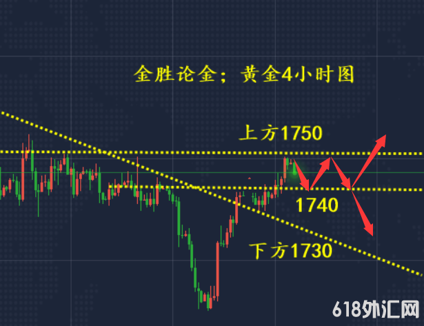 现货黄金;今日黄金重点看1730-1750这个关键点位一线!只有完全有效上涨后再立马顺势跟多。