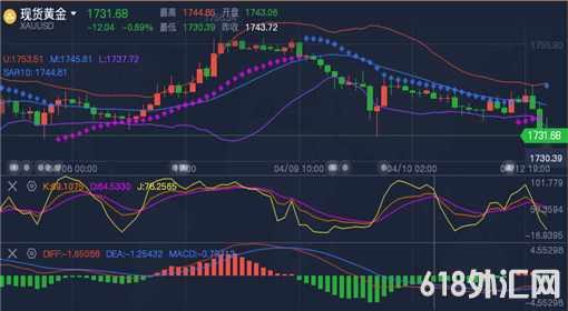 黄金从日线图上看,日线布林带三轨持平,显示黄金继续维持震荡。指标上看目前5日与10日均线交叉但方向不明,MACD向上运行,0轴上方红色能量柱小幅增大,KDJ向上运行但有拐头向下的趋势,指标显示在看涨的同时也要注意回落风险。黄金日线二次探底1676没有跌破,企稳在1678-1677附近再次大幅反弹,看起来好像企稳了,但还需要进一步突破1760和1765才能真正形成双底,否则在1676-1760区域继续震荡不是没有可能,甚至新低也是可能的。黄金从4小时图上来看,金价重回1740上方区域,目前金价已经上破了1740关口的阻力,但受阻于1748附近。黄金从4小时指标上看,金价处于布林中轨与上轨之间运行,短期均线EMA5和EMA10走平运行,MACD双线向上运行,0轴上方红色动能逐步缩小,KDJ向下运行,指标显示金价目前处于震荡走势当中,等待市场进一步变化。1小时图上看,布林带三轨收窄走平,金价处于中轨与上轨之间运行。指标上看,短期均线EMA5和EMA10金叉向上运行,MACD双线粘合走平向下,0轴下方绿色动能柱逐步缩窄,KDJ向上运行但有拐头向下的趋势,指标显示金价持震荡但存在回落。综合来看,今日短线操作思路上刘.铭诚个人建议以回调做多为主,反弹做空为辅,上方重点关注1750-1755一线阻力,下方重点关注1725-1720一线支撑。具体策略刘`铭诚口末亻言zdmj868会在实战中实时布局更新!