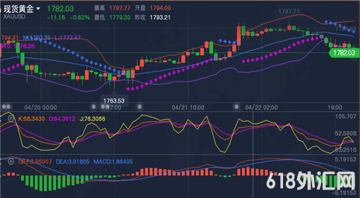 周四(4月22日),国际金价自八周新高回落,重要阻力位1800美元关口存在明显阻力。但印度单日确诊病例创全球新冠疫情爆发以来各国纪录之最,提升了黄金避险作用。金价盘中触及2月25日来最高水平1797.92美元,距离关键的1800美元关口仅一步之遥。分析师表示:“明显支撑(黄金)上行的是美债收益率走势……其在极短时间内走低。”他并称,收益率若跌破1.5%,可能帮助黄金升破1800美元的重要心理关口。金价收涨,主要因市场对新冠疫情的担忧升温,此外美债标售强劲,美债收益率回落也支持了金价,不过由于加拿大央行有从紧迹象,这使得投资者担忧全球央行逐步收紧,这又给金价压力。