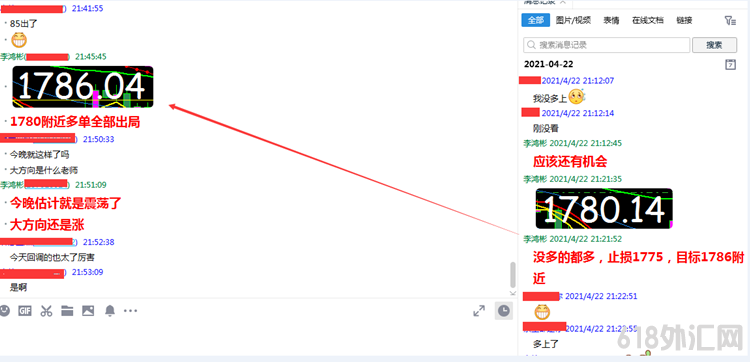 4.22黄金日内布局的1780多,成功获利1786出局;