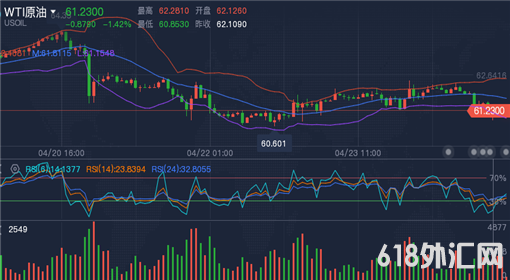 原油从技术面来看,日线级别短线来看,油价短线走势震荡,方向不明,表明多空情绪反复,市场莫衷一是。近期,市场上关于疫情的担忧情绪与经济复苏的良好预期并存,这使得油价一时间上蹿下跳。中长线来看,油价受到下方一条上行趋势线的支撑,上涨机会仍然较大。日内或有可能挑战50%回撤位62.62的阻力,如果得以突破62.62,将有望进一步挑战61.8%回撤位63.89以及4月20日高位64.38。倘若不幸跌破下方38.2%回撤位61.35,可能将继续试探趋势线所在的61关口,以及下方23.6%回撤位59.78。综合来看,今日短线操作思路上刘铭诚个人建议以回调低多为主,反弹高空为辅,上方短期重点关注63.0-63.5一线阻力,下方短期重点关注60.5-60.0一线支撑。具体策略刘`铭诚口末亻言zdmj868会在实战中实时布局更新!
