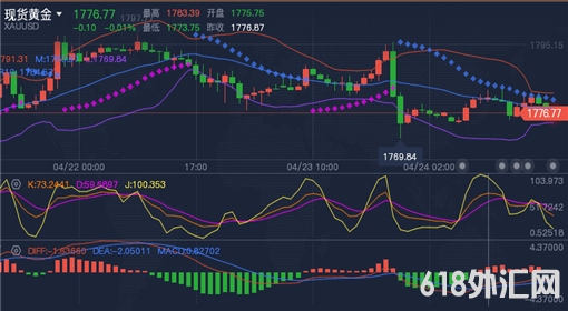 周一(4月26日),现货黄金价格上涨,在美联储本周会议前,美元走弱,且印度新冠感染病例数激增提振了黄金的避险魅力。但美债收益率上升近2个基点抑制金价涨幅。分析师表示:“印度和日本新冠疫情正在恶化。因此避险需求热络,导致金价走升。”她并称,美元走软进一步支撑金价。金价收跌,主要因市场焦点转向本周美联储决议,市场预期美联储对美国经济的表述乐观,这提振美债收益率,不利于避险金价。市场人士目前等待美联储周二(4月25日)起展开的为期两天的政策会议,尽管市场预期政策不会改变,但将重点关注主席鲍威尔的记者会。鲍威尔此前多次强调,今年将短暂出现通胀“略高”于目标的情况,但美联储承诺将任何通胀超过目标的情况控制在一定限度内。