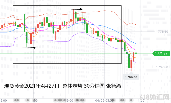 国际黄金:下方关注1763美元附近,以及1757美元附近支撑;上方关注1777美元附近,以及1782美元附近阻力;